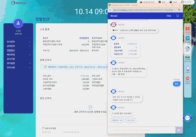 ์ธ๋ฒ๊น์ง ์กฐ๊ธ์ฉ ๋ฐ๋๊ธฐ ๋๋ฌธ์ ์ค์ ์์ด ์๋ฒฝํ ์ดํดํ๊ณ ์ฒ๋ฆฌํ๊ธฐ๊ฐ ์ด๋ ค์ด ๊ฒ ๋น์ฐํด. ๊ทธ๋์ ์ค๋์ ์ฐ๋ง์ ์ฐ ๋์ฐ๋ฏธ ์ญํ ์ ์ํํ๋ AI ์์ด์ ํธ ํด, <Metapay AI>๋ฅผ ์๊ฐํ ๊ฒ.